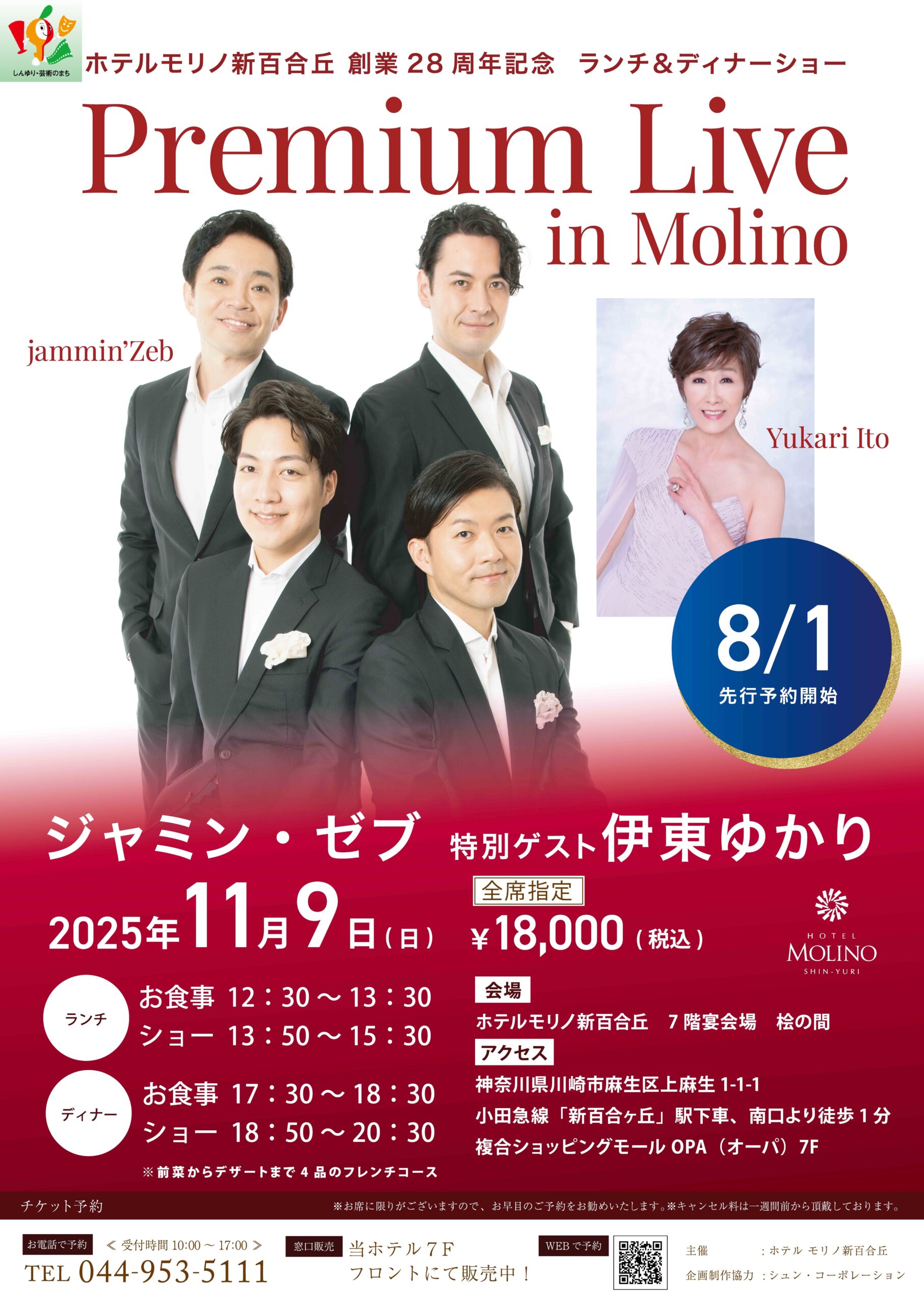 ホテルモリノ創業28周年記念 ジャミン・ゼブ プレミアムライブ開催!!伊東ゆかりさんがゲスト出演!(締切あり)