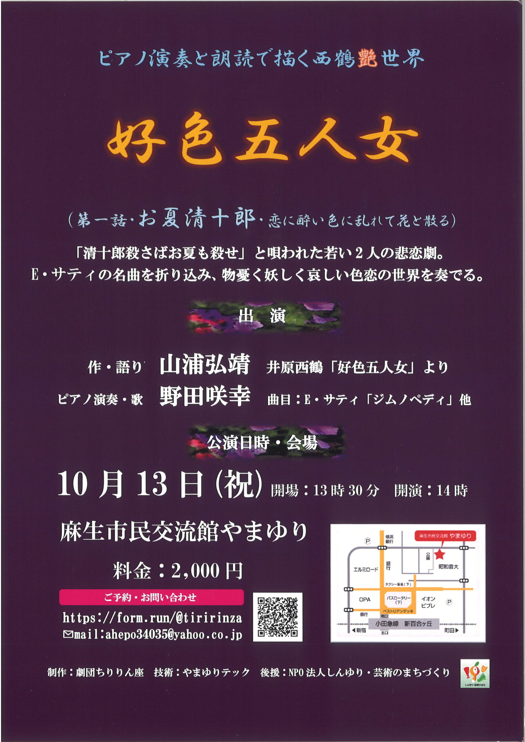 ピアノ演奏と朗読が奏でる西鶴艶世界・好色五人女このイベントは終了しています